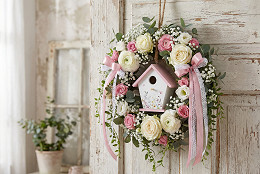 Drevená vtáčia búdka je zaujímavou dekoráciou s romantickým vzhľadom. Predná strana je ozdobená kvetinovou potlačou. Môžete ju umiestniť na terasu, balkón, do kuchyne a pod. Je možné ju zakomponovať aj do venca. Búdka má pútko na zavesenie .