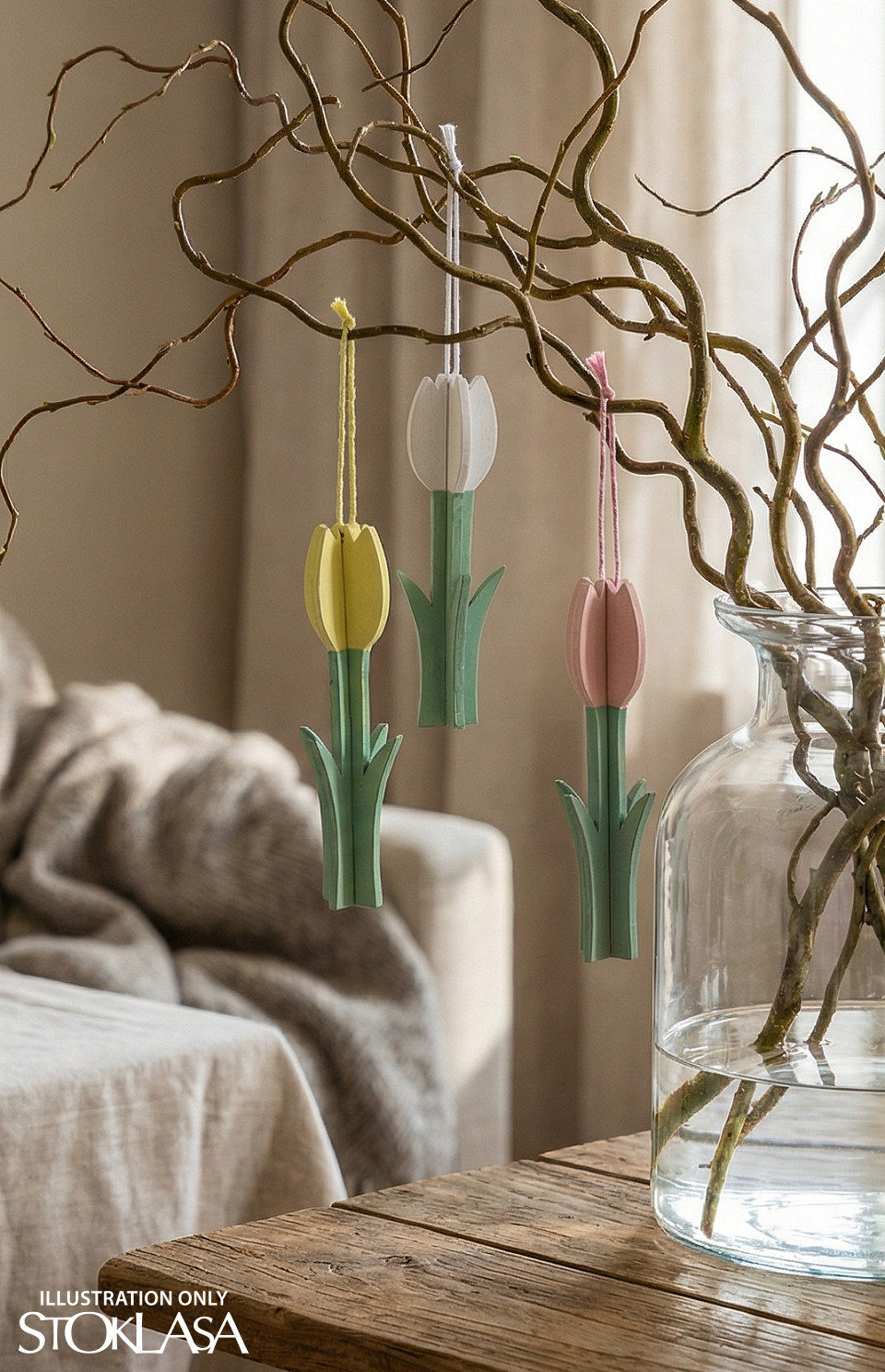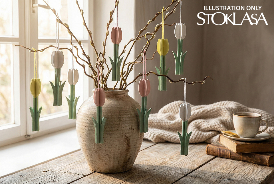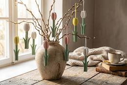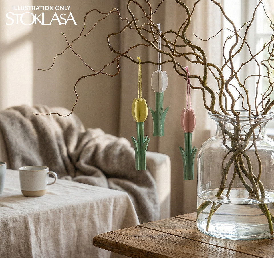 Drevený tulipán na zavesenie je dekoračným prvkom, ktorý očarí svojou jednoduchosťou a eleganciou. Jeho jemné farby prispievajú k vytvoreniu príjemnej a útulnej atmosféry. Má pútko, vďaka ktorému ho môžete ľahko kamkoľvek zavesiť.