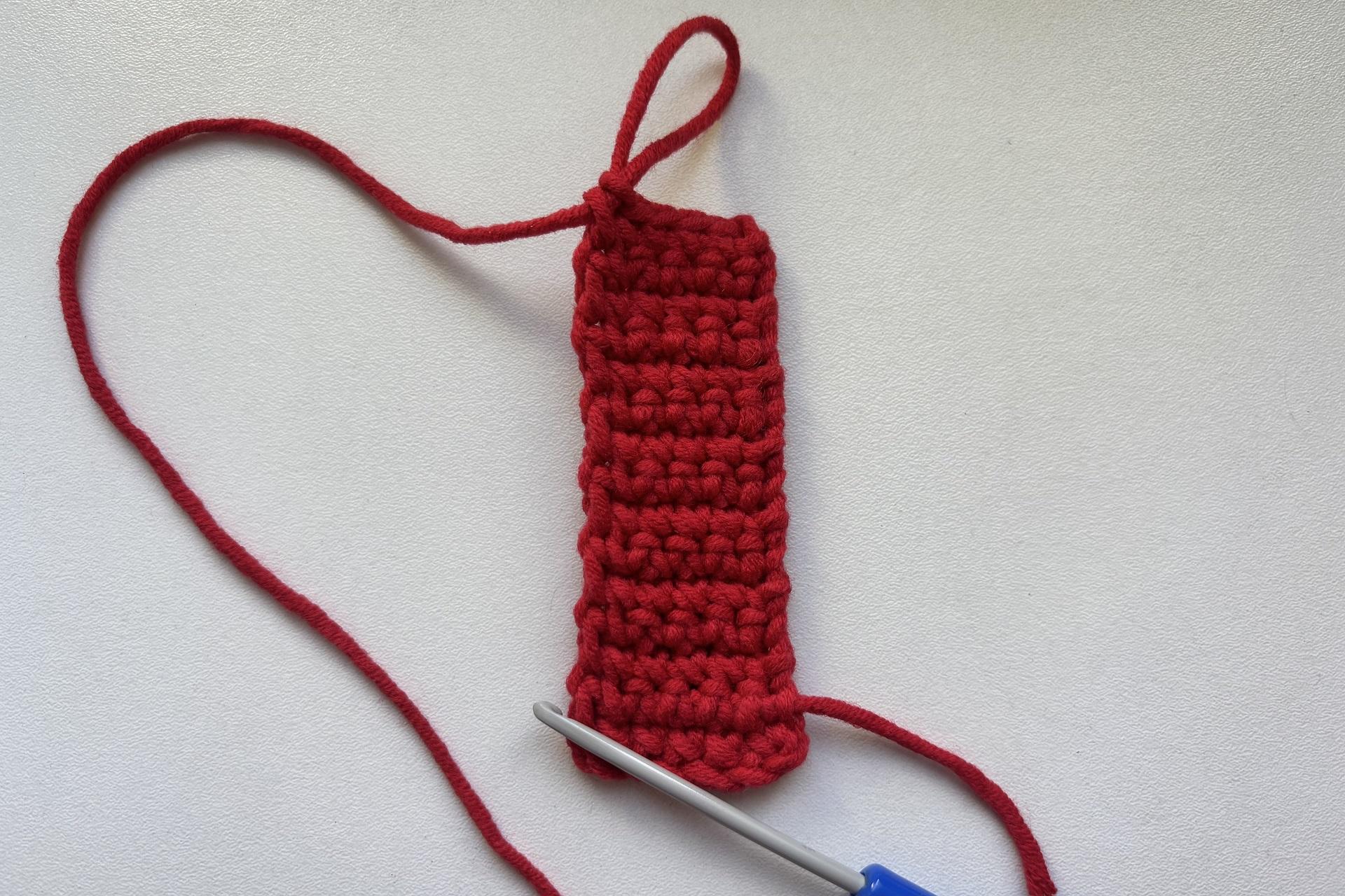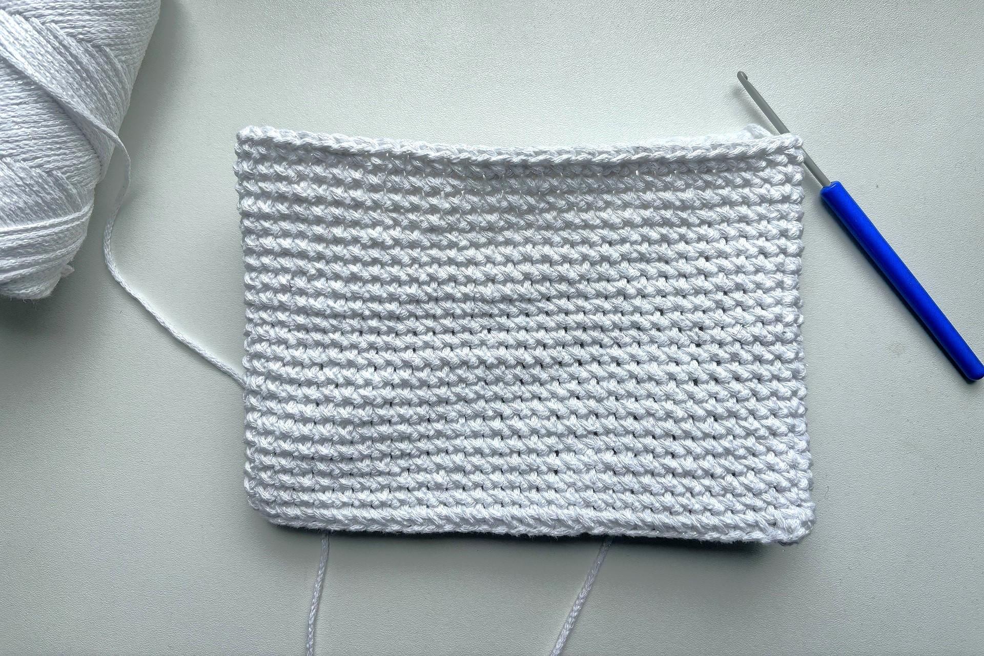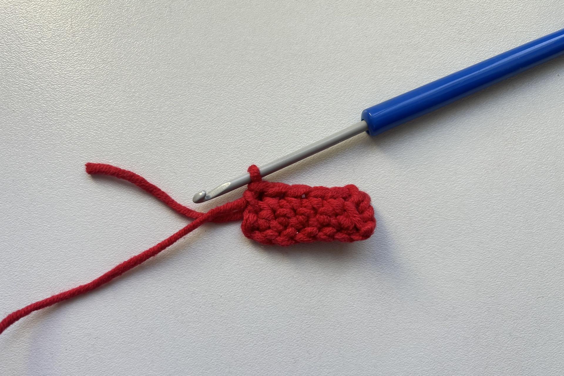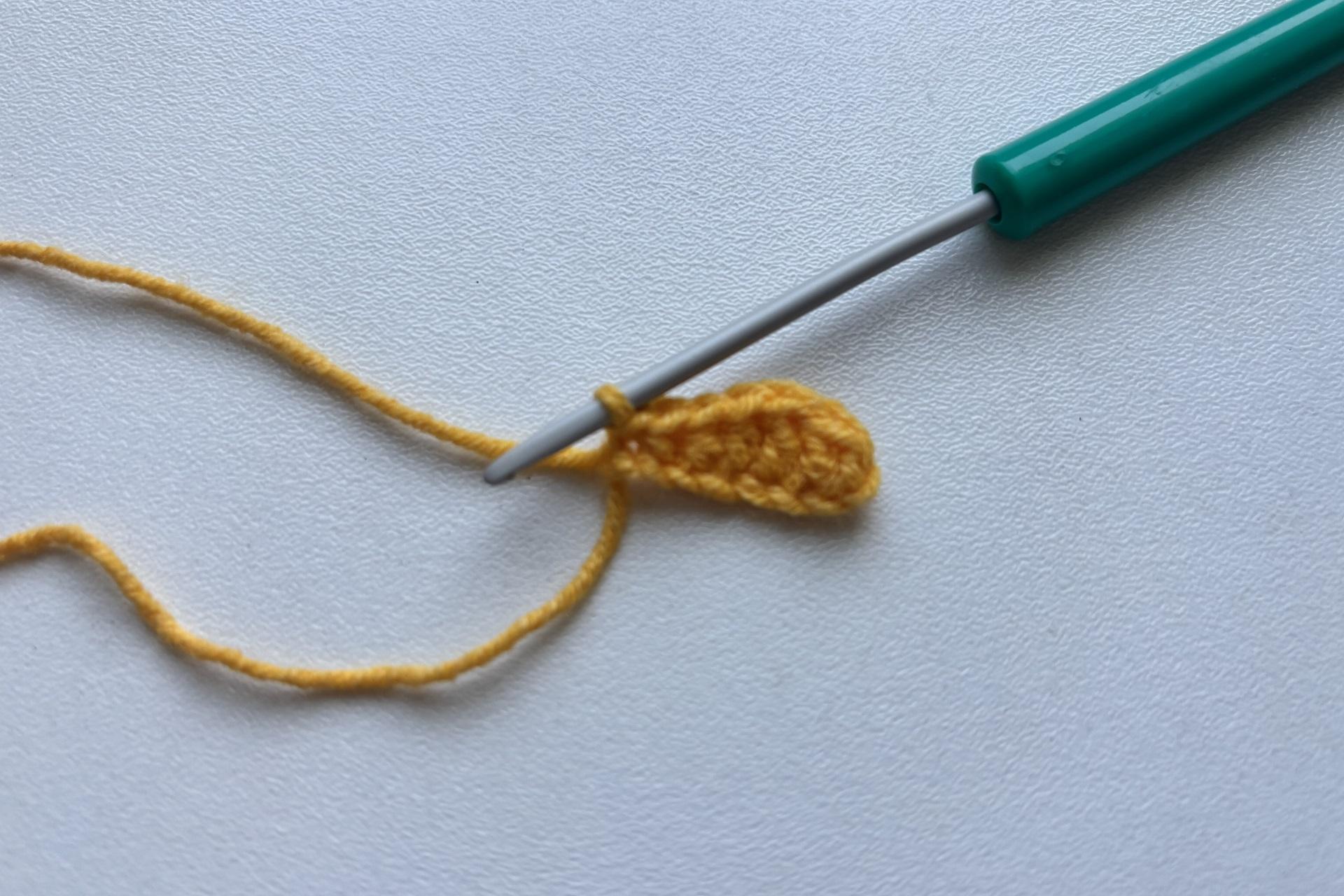 8. V tejto rade háčkujeme uši na taške. Uháčkujeme 16RO, preskočíme 16 očiek a pichneme do 17. očka. Rovnako urobíme aj druhé ucho.