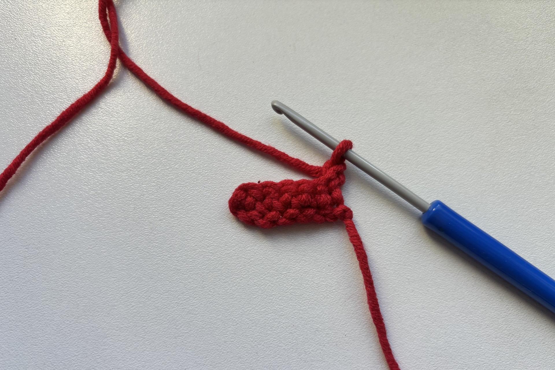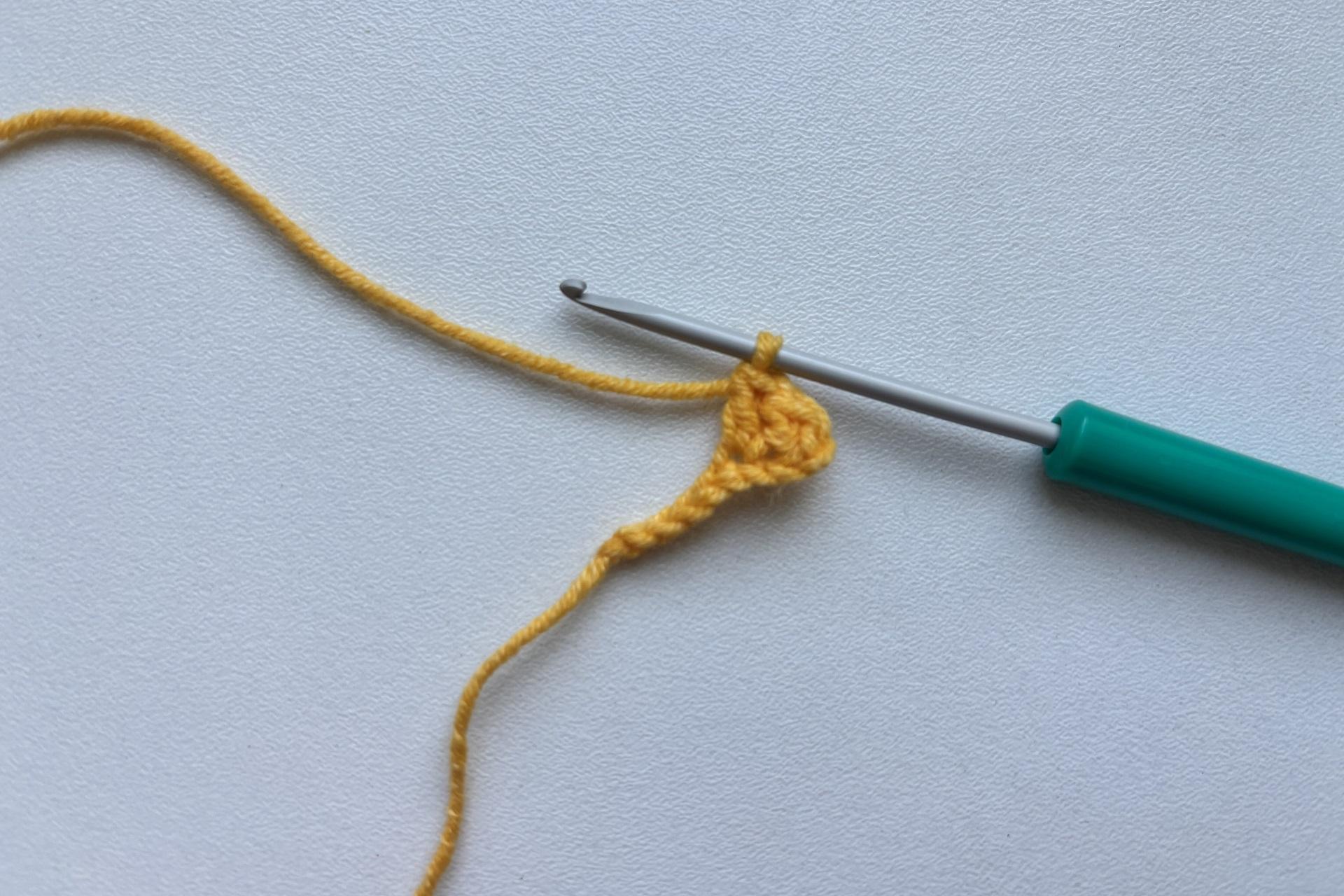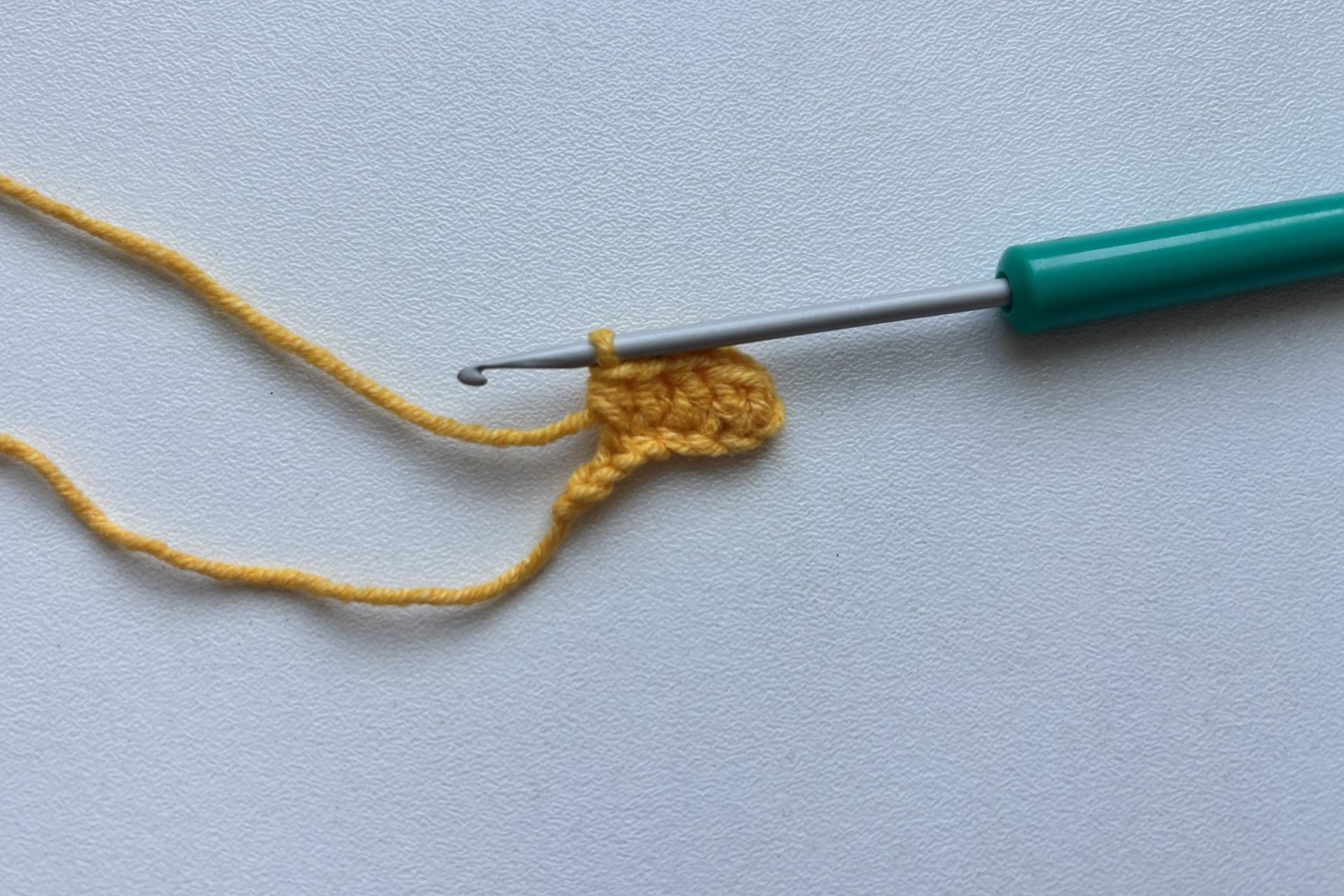V - rozháčkujeme jedno očko - do jedného očka háčkujeme 2KS