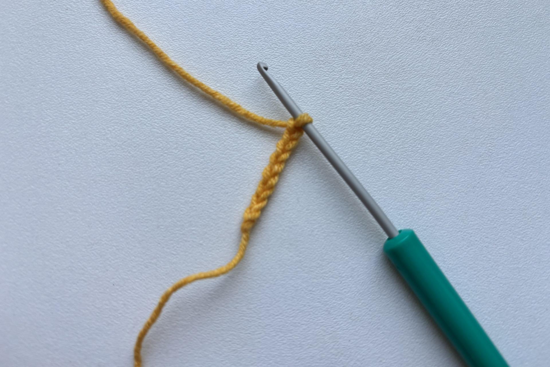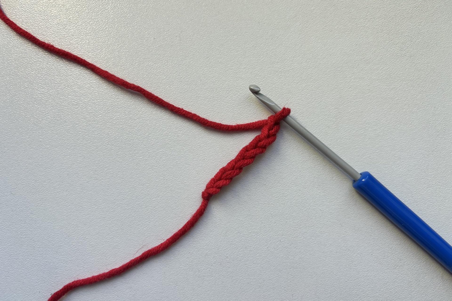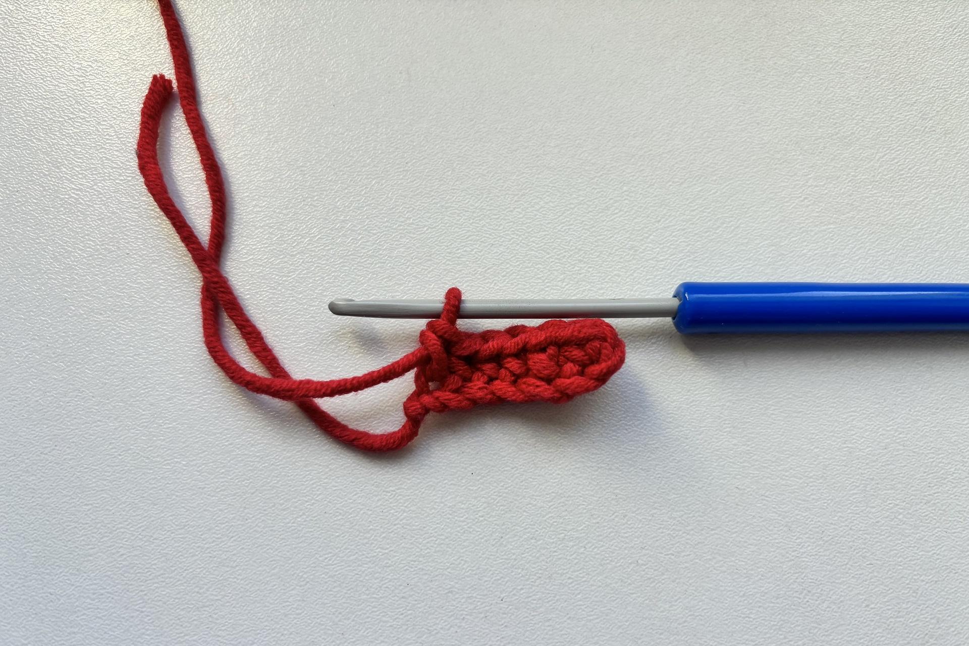 V - rozháčkujeme jedno očko - do jedného očka háčkujeme 2KS