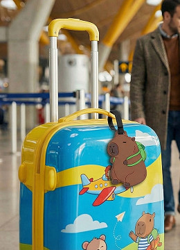 Neprehliadnuteľná menovka na kufor je na jednej strane ozdobená veselým motívom zvieratka . Uľahčí hľadanie vášho kufra vo veľkom množstve batožiny. Je silikónová, ohybná. Do príslušných kolóniek, ktoré sú umiestnené na druhej strane, môžete napísať základné údaje ako je meno, adresa, telefón, popr. e-mail. Súčasťou visačky je aj opasok na prichytenie. Kartička na vpísanie údajov sa dá vysunúť, je chránená transparentnou fóliou. Rozmery písacej časti sú cca 2,3 x 4,5 cm.