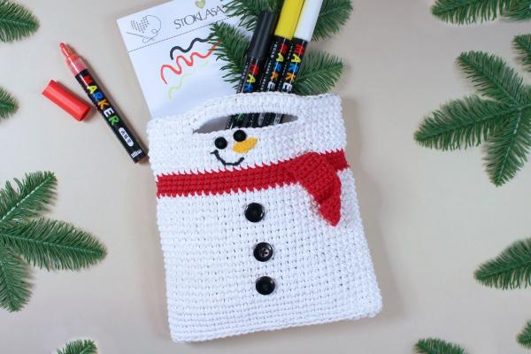 Privítajte zimu s úsmevom! Snehuliak v podobe háčkovanej tašky okúzli svojou hravosťou a dodá zimnému tvoreniu trošku kúzla. Je to ideálny doplnok pre všetkých, ktorí milujú zimnú atmosféru a chcú si spríjemniť chladné dni farebnými a veselými detailami. Využijete ju trebárs ako milý obal na darček, ktorý poteší každého, komu ho darujete.