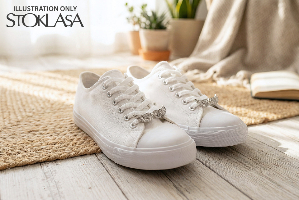 Ozdoba na obuv krídlo s brúsenými kamienkami je vhodná na tenisky a všetky topánky so šnúrkami . Je perfektným doplnkom pre každého, kto chce svojim topánkam dodať štýl a jedinečnosť. Na zadnej strane má 4 háčiky , ľahko sa pripevňujú na šnurovanie tenisiek, takže svoje obľúbené topánky môžete vylepšiť behom chvíľky. Ozdoba je ľahká a odolná , hodí sa aj na celodenné nosenie. Môžete urobiť z obyčajných tenisiek unikátny módny kúsok. Ozdoba je vhodná na rôzne typy šnúrok.