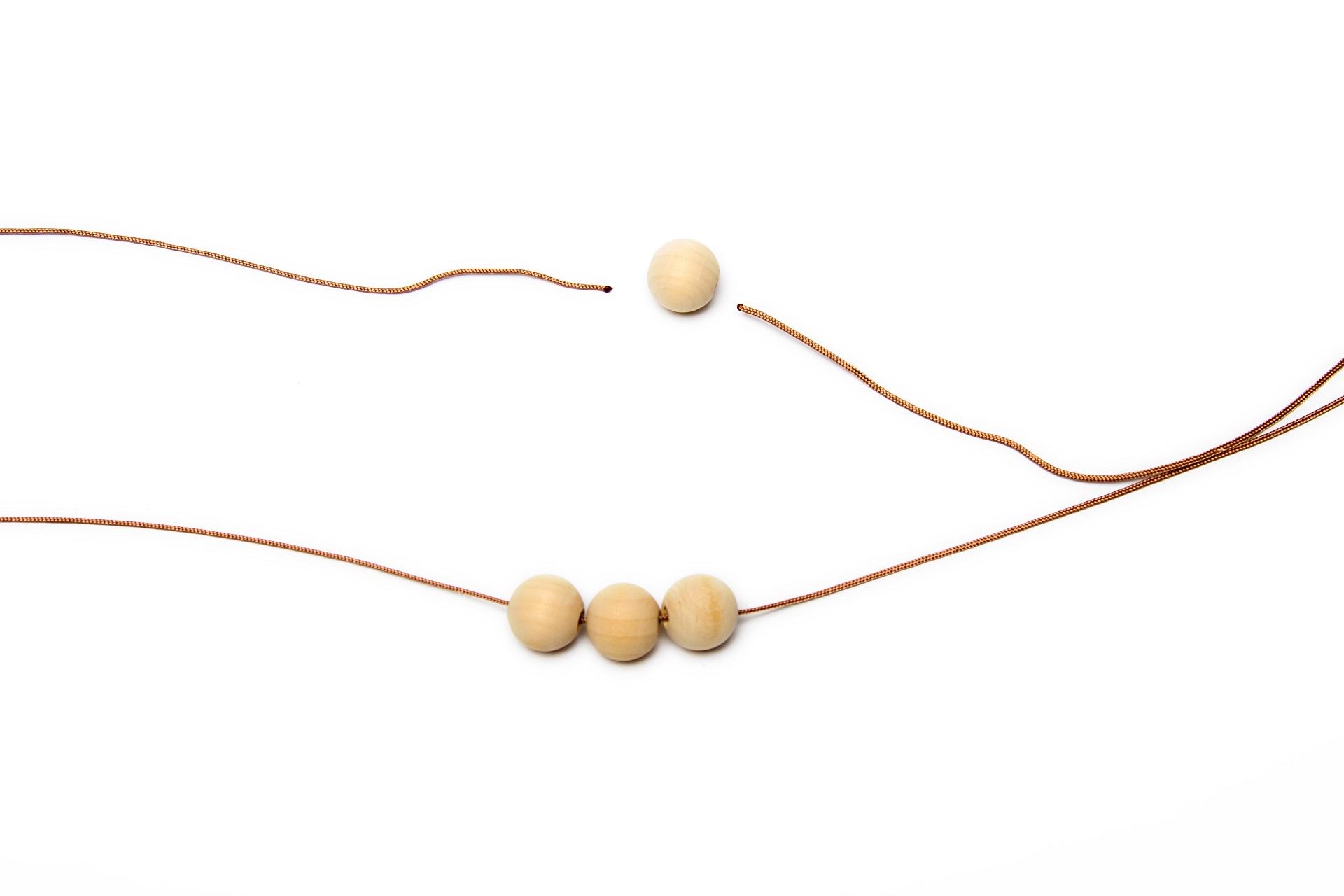 1. Odstrihneme cca 2 m návlekového materiálu. Môžeme použiť pevný silón alebo PES šnúrku. My sme pre tento návod zvolili PES šnúrku, ktorá je na fotografiách lepšie viditeľná.