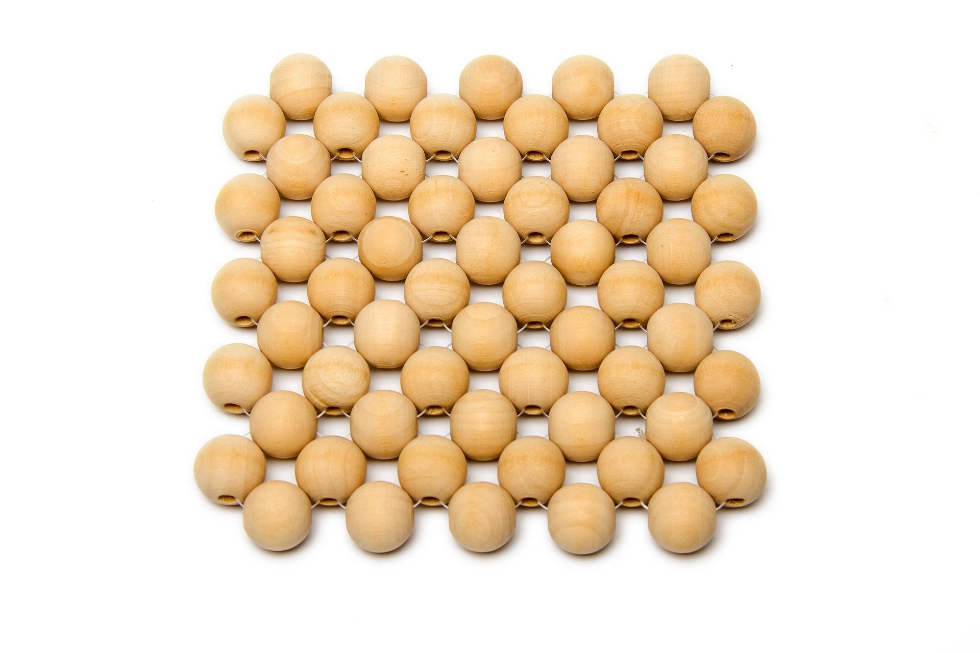 Podložka s veľkosťou cca 14 × 14 cm vznikne z približne 50 korálikov s priemerom Ø 18 mm (rozmer sa môže mierne líšiť podľa spôsobu navliekania).