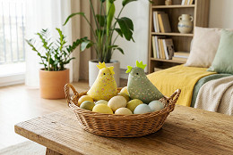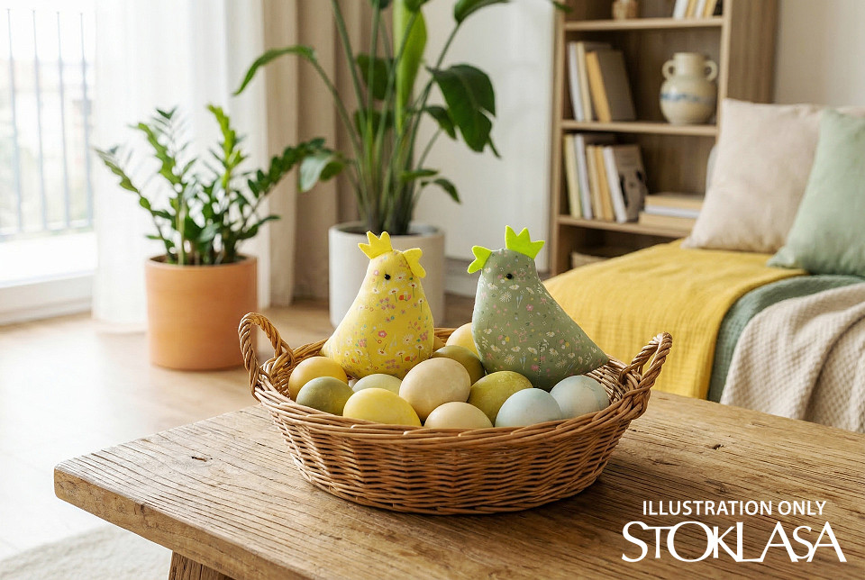 Textilná sliepočka vynikne vo veľkonočných a jarných aranžmánoch. Je možné ju tiež umiestniť na poličku, stôl či parapet, kde vytvorí hravé zákutie.
