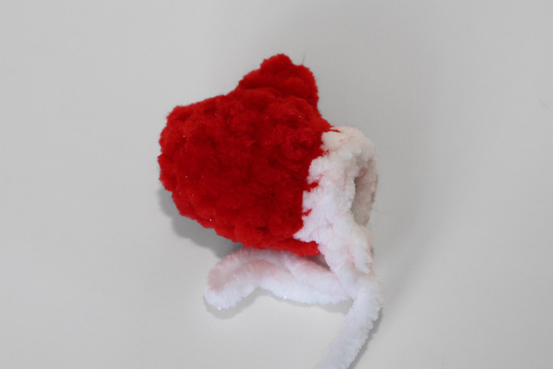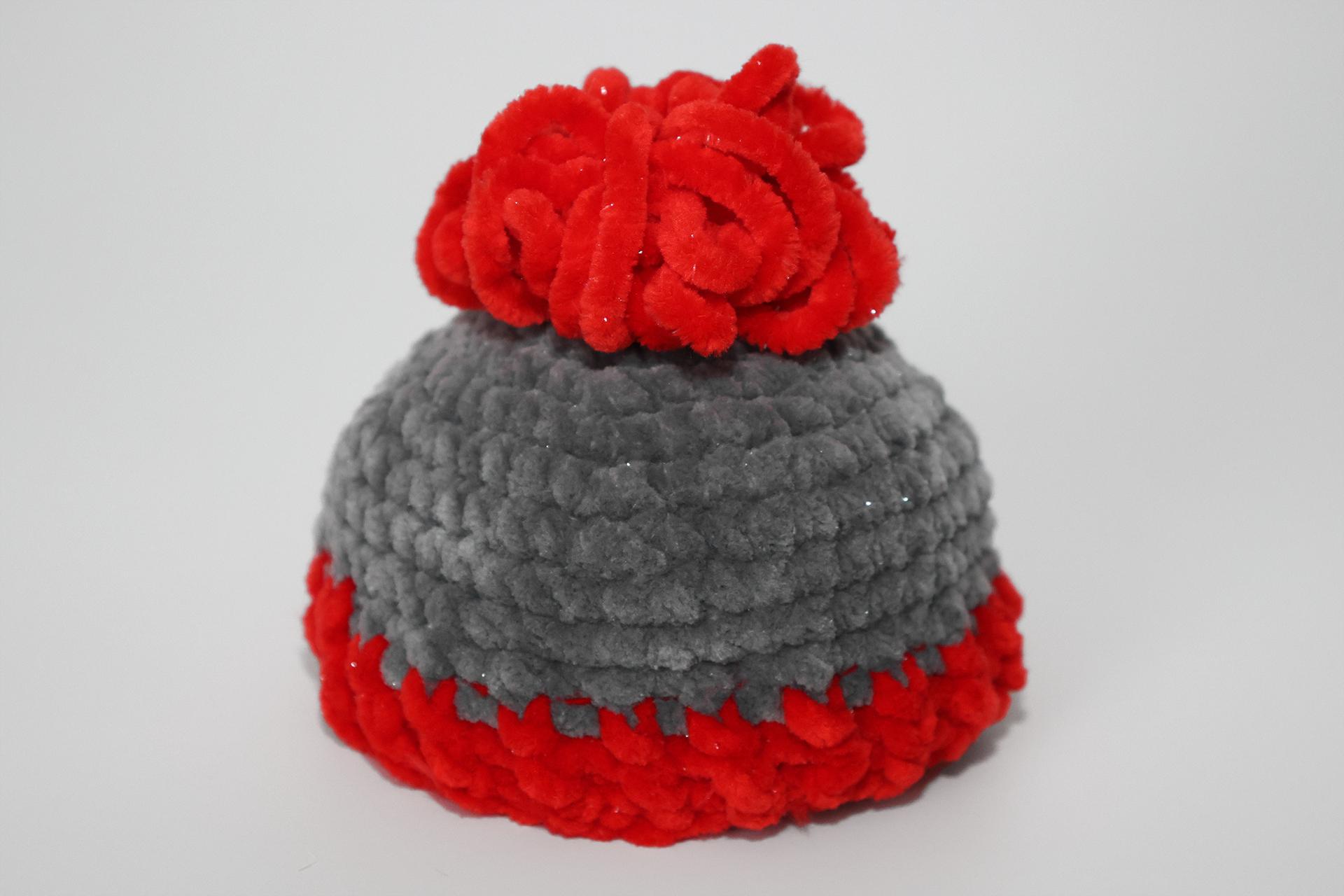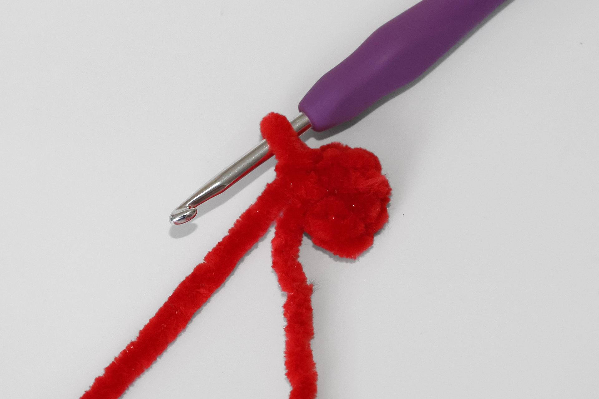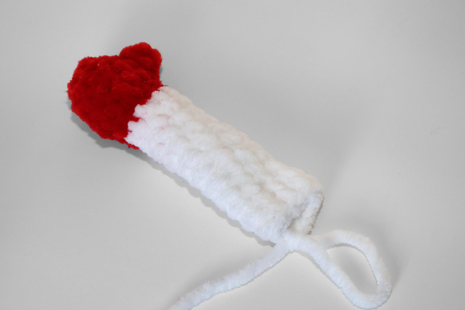 50. Naviažeme červenú priadzu a budeme striedavo háčkovať PRKS a ZRKS. Takto uháčkujeme 3 rady, ukončíme a priadzu zapošijeme.