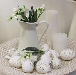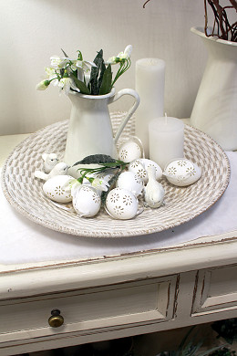 Veľkonočné vajíčka s dierovaným dizajnom vám ozdobia vence, vetvičky vo váze a pod. Sú ľahučké, majú pútko zo saténovej stuhy. Môžete ich ponechať biele, alebo ich pomaľovať podľa svojho vkusu.