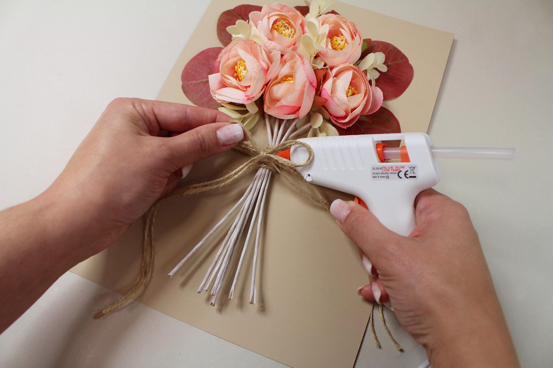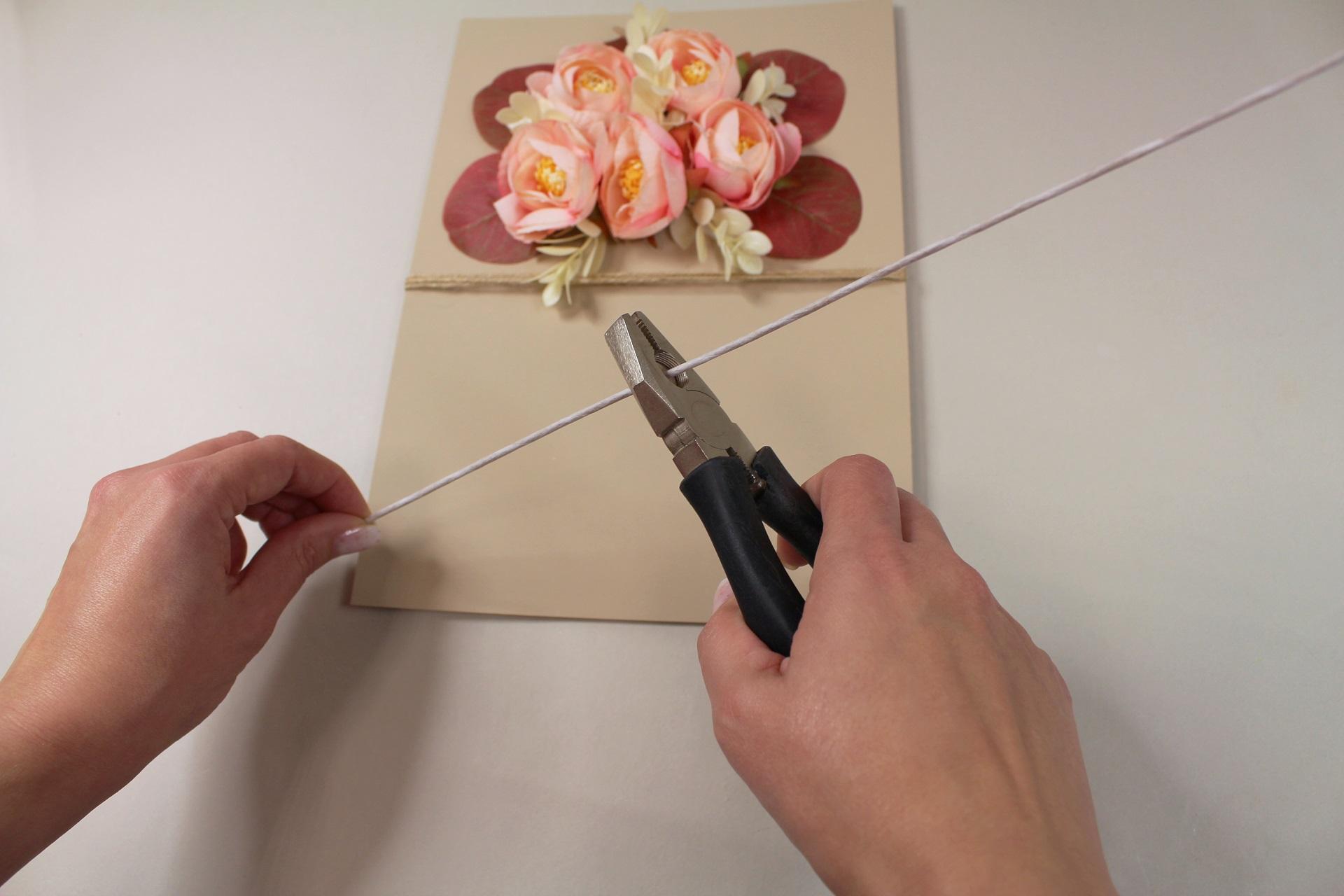 9. Pripravíme si drôtené „stonky“, ktoré budú tvoriť spodnú časť kytice. Skrátime každú stonku na požadovanú dĺžku podľa veľkosti priania.