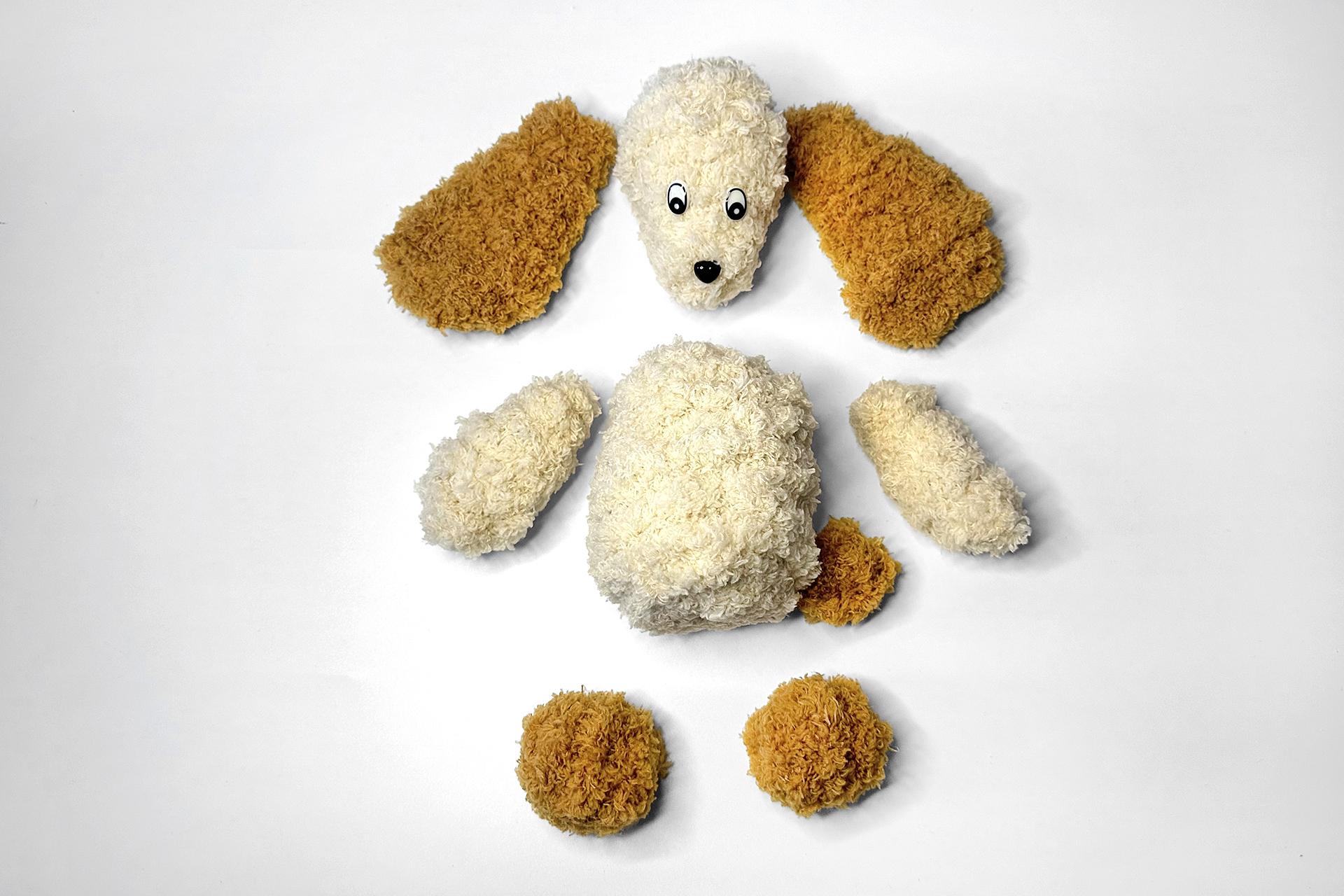 5. Aby bol psík vzhľadovo atraktívnejší, niekteré diely môžeme vytvoriť z chlpatých drôtikov inej farby. Napríklad labky.