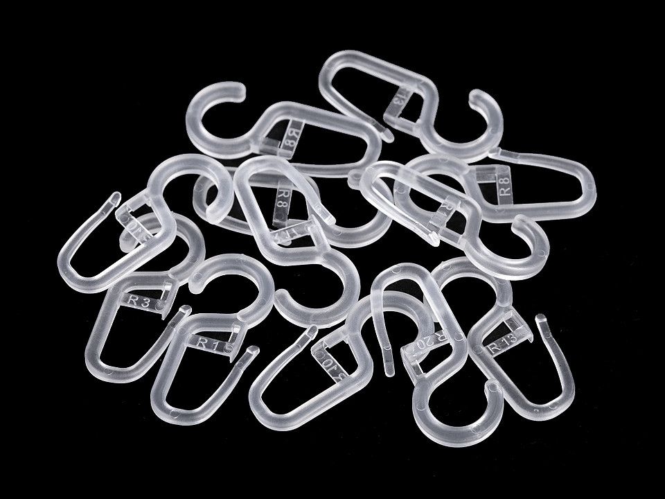 Háčiky prepájajú riasiacu stuhu s garnížou alebo kolajničkou. Aj ich výber má vplyv na komfort pri používaní i životnosti záclon. Háčiky sa vkladajú do očiek riasiacej stuhy alebo do špeciálnych vreciek, pri žabkách sa látka uchytáva priamo. Rozostupy sú dané samotnou stuhou alebo rozmiestnením žabiek, vďaka tomu je zavesenie vždy rovnomerné. Prispôsobte typ háčikov alebo žabiek druhu garníže. Plastové háčiky sú ideálne pre koľajničky s ľahkými záclonami, kovové lepšie držia ťažké závesy na tyči. A aké druhy háčikov a žabiek si u nás môžete vybrať?
